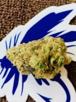 Blue M&M Sprinklez is an indica dominant hybrid strain (70% indica/30% sativa) created through an unknown combination of other hybrid strains. Named for the iconic candy, M&M packs a delicious flavor and soothing high that will have you soaring for hours and hours on end. Much like its namesake, this bud packs a sweet chocolately flavor with light touches of spicy skunk and woody pine. The aroma is on the heavier side of things, with a super skunky overtone that’s accented by woody pine and a touch of earthy chocolate. The M&M high will settle in a few minutes after your final exhale, filling your brain with an expansive happiness that pushes out any negative or racing thoughts. A light physical tingle accompanies this heady lift, filling your body with a deep relaxation that drops you into a heavy state of calm. In combination with its high 15-20% average THC level, these full-bodied effects make M&M a great choice for treating those suffering from conditions such as chronic pain, muscle spasms or cramps, chronic stress or anxiety and insomnia. This bud has hand-shaped super dense forest green nugs with thin orange hairs, dark amber undertones and a coating of frosty, amber-tinted white crystal trichomes.